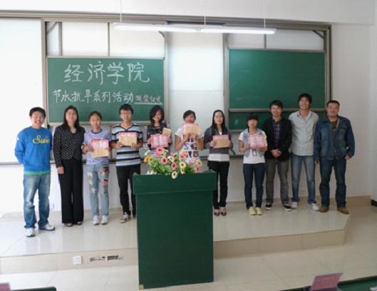 出席此次颁奖仪式的嘉宾有院党委副书记李娟老师、团委书记丁江辉老师、2009级辅导员王守义老师、2010级辅导员杜乐乐老师和2011级辅导员李鑫磊老师,以及获得“寝室节水大赛”和“节水抗旱•学雷锋”主题征文大赛一、二、三等奖的学生们。