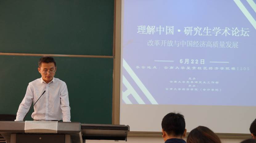 BV伟德官方网站“理解中国”研究生学术论坛是BV伟德官方网站“理解中国”计划系列项目之一,旨在引导研究生在科研学术中树立“中国主体性”研究思维,树立学术报国理想,在国内产生了广泛的学术影响。“会泽百家,至公天下”,本次“理解中国”研究生学术论坛——改革开放与中国经济高质量发展主题论坛秉承云大精神,为加强我校学生与外校学生的交流和推进学校双一流建设作出贡献。