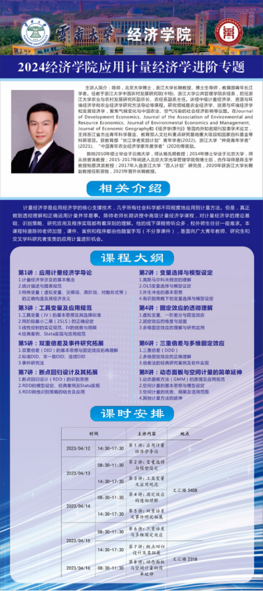 BV伟德官方网站2024年4月学术报告和应用计量经济学进阶专题预告