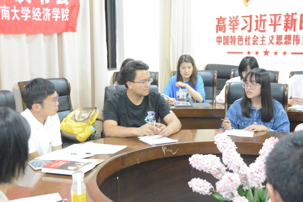 其次是解真题,把握青年成长的焦点。习总书记高度重视青年人成长成才的问题,《习近平与大学生朋友们》一书中字里行间都透露着总书记对青年成长和发展的关注,要求大学生们带着强烈的现实关怀和问题意识,联系实际,知行合一,积极主动地认识和改造世界。在实践中,我们要把握时代的脉搏,应对新环境中的困难和挑战;坚持需求导向,更好地联系和服务青年,面向基层,更好地解决青年人成才和创新创业的问题。赵熙学长在分享中还提出了一个问题,引起了同学们的热烈讨论。他问为什么我们要学习政治相关的理论知识呢?同学们踊跃发言,积极主动地发表了自己的看法,其中,来自国际商务的马薇同学讲到,现在我们青年人接受信息的渠道越来越多,信息种类繁多、良莠不齐,通过学习这些理论知识能帮助我们坚定自己的政治立场,树立坚持走中国特色社会主义道路的信心,让我们用这些理论知识来指导实践,成为一名合格的社会主义建设者。同学们纷纷表示赞同。
