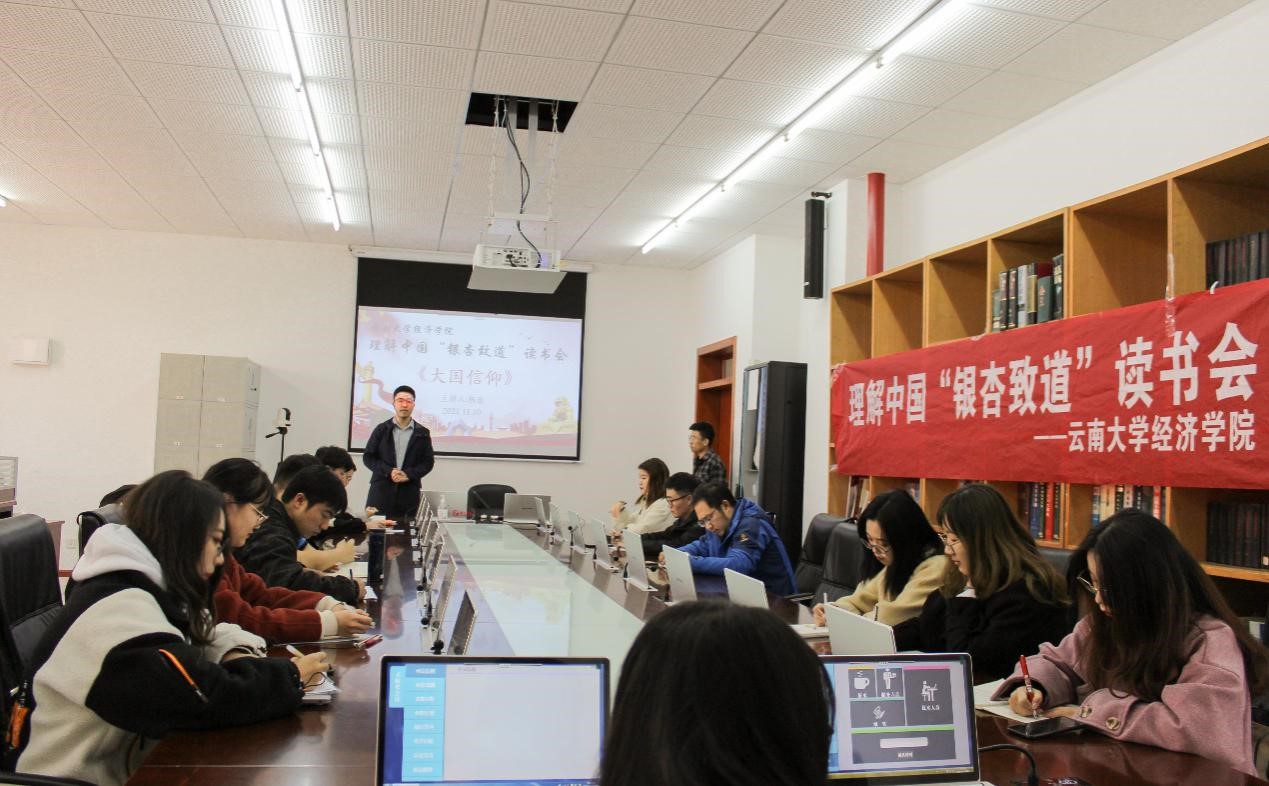 我们生长在红旗下,长在春风里,人民有信仰,国家有力量,目光所至皆为华夏,五星闪耀皆为信仰。2021年11月10日下午,BV伟德官方网站“银杏致道”系列读书会第二季第七期在BV伟德官方网站1502举办。本期读书会有幸邀请到BV伟德官方网站校团委副书记徐琰超老师和BV伟德官方网站团委书记李振东老师,参与并指导本次读书会。BV伟德官方网站硕士研究生杨康作为主推人,同来自审计、区域经济学、金融等专业的研究生同学分享交流《大国信仰》一书,并结合自身专业背景知识以及时事展开丰富讨论。