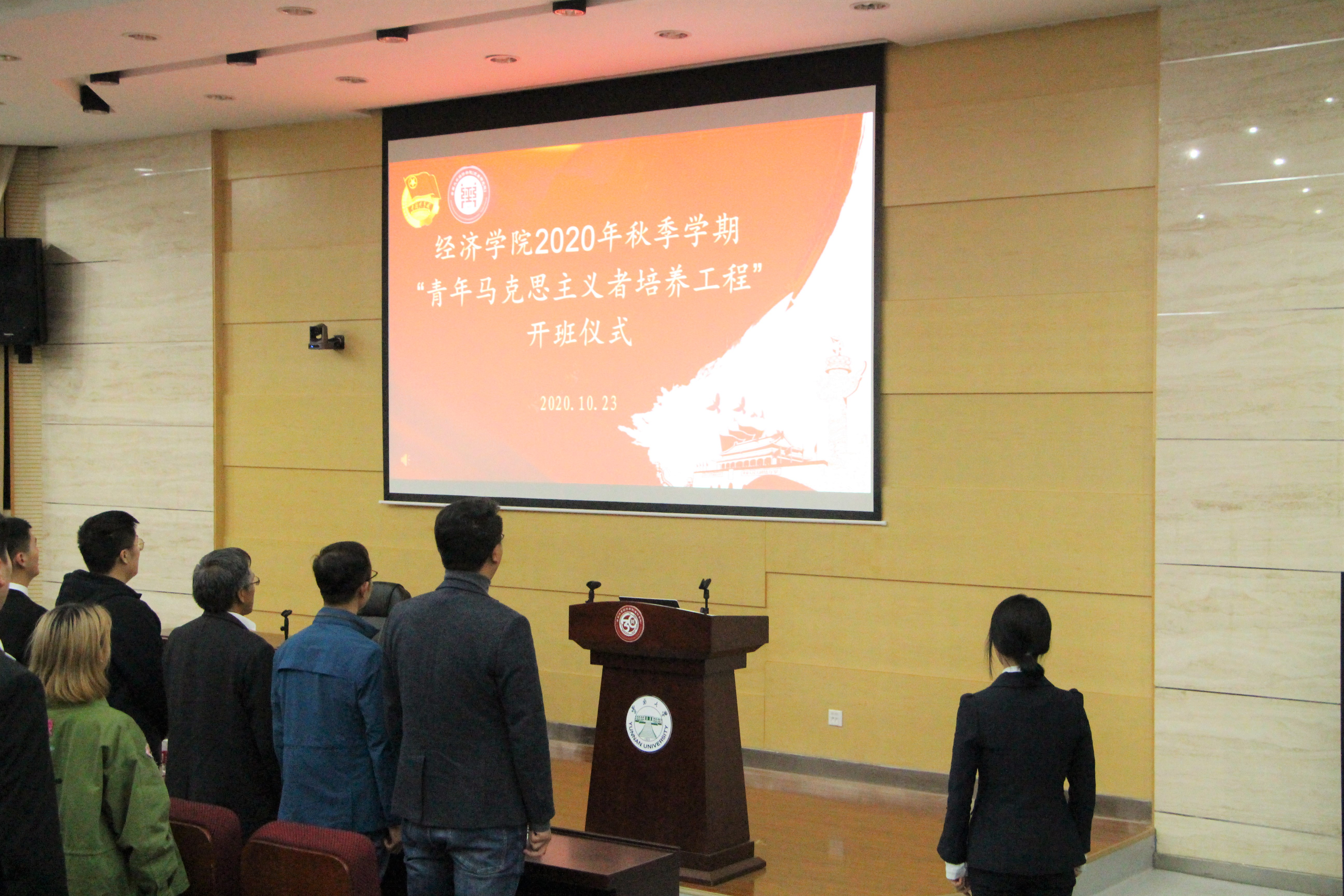 仪式在庄严隆重的国歌声中拉开帷幕,在场全体人员在主持人李若婧带领下肃然起立共唱国歌。紧接着,BV伟德官方网站党委副书记牛文斌老师为学院2020年秋季学期“青马工程”培训班致辞,他指出青马工程学员要通过此次青马工程学习,成为有信仰,有担当的新时代的青年,成为马克思主义的拥护者;还要不断提高自身的理论素养,成为马克思主义的践行者;同时不断反思,深化到学习中去,成为马克思主义的传播者,他还强调不管是拥护者,实践者还是传播者都要落实到学习中。