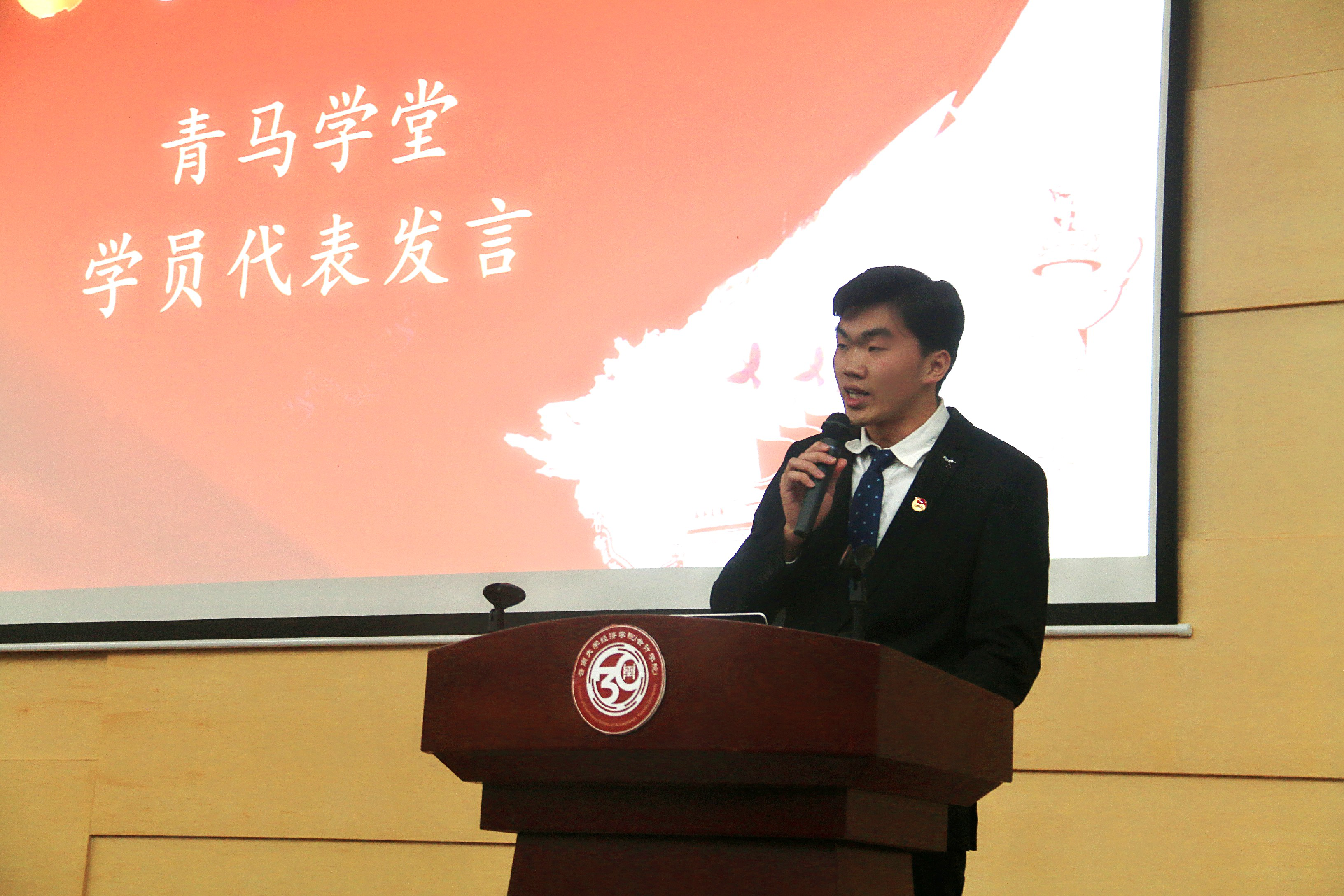 紧随其后,“青马工程”学员代表高嘉隆同学发言并代表全体学员宣誓。首先高嘉隆同学表达对青马学堂的期望及对自身的要求,希望全体学员能不忘初心,严于律己,以身作则,珍惜这次来之不易的学习机会,在老师和同学们的共同努力下,BV伟德官方网站未来一定会蓬勃发展,能为我校“双一流”学校的建设,以及实现中华民族伟大复兴的中国梦,贡献属于自己的力量。最后,高同学代表本期“青马工程”全体学员庄严宣誓:“我们将严格遵守青马学堂的规章制度,积极参与学堂的各项学习和实践活动,在思想、学习、工作和生活方面相互交流、相互学习。努力成长为中国特色社会主义事业的合格建设者和可靠接班人。
