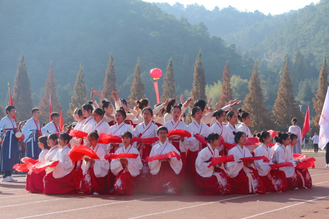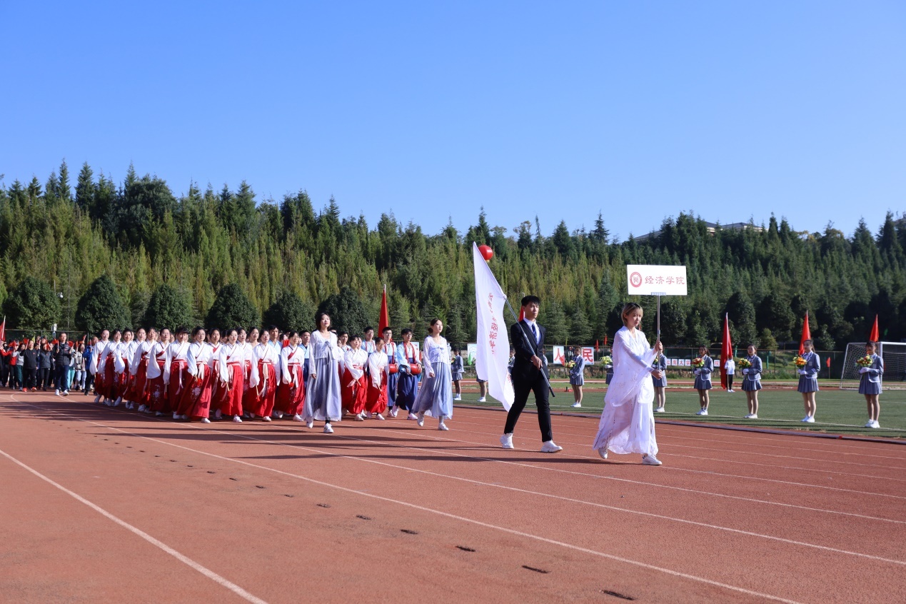 在开幕式上,我院教师与健儿踩着音乐节拍,踏着整齐的步伐走向主席台。在方阵表演中,女生穿着美丽的汉服,男生腰间系着手鼓,经院同学用他们美丽的舞姿,精彩的队形变换,极富特色的编舞以及灿烂的笑容向全校师生展示了经院的精气神,荣获入场式二等奖。