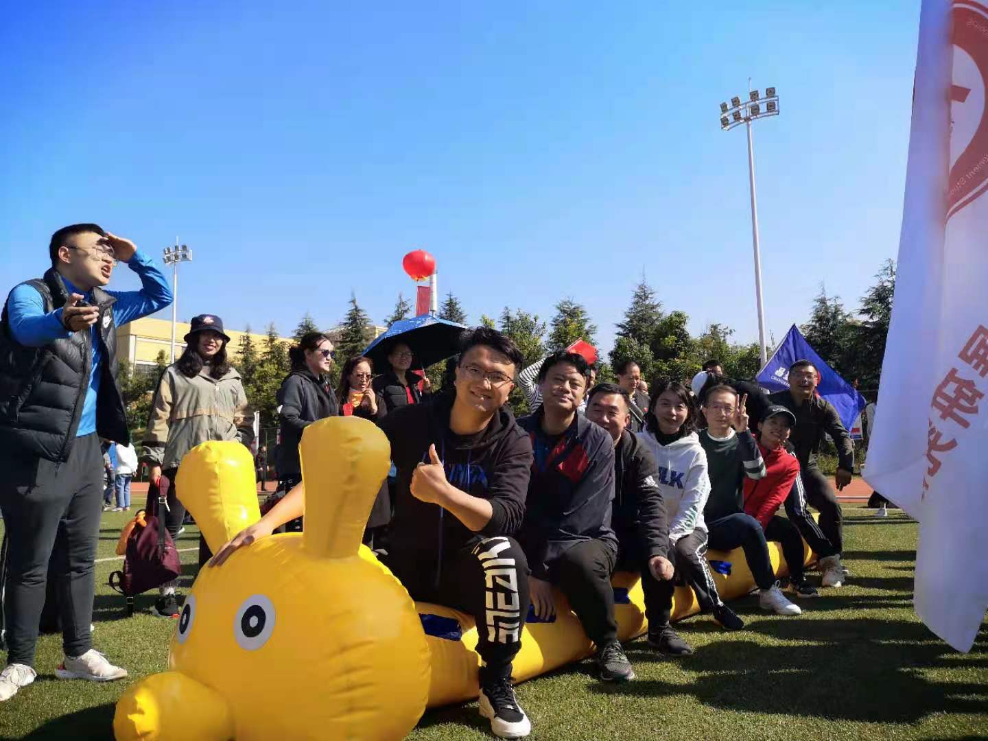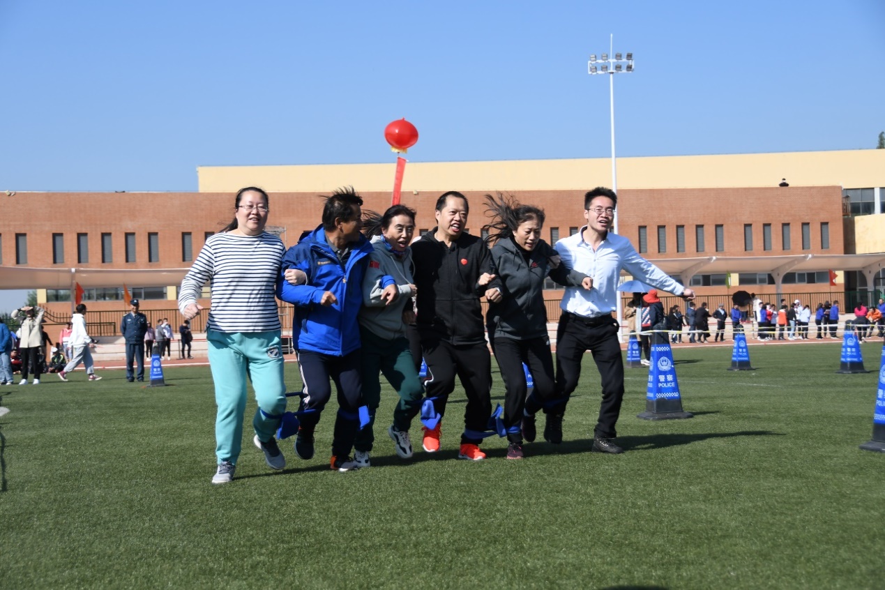 毫不逊色,教师们卸下了平日工作的繁忙,在阳光下欢声笑语,充分发挥团队精神,积极热情的参与每一项活动,在毛毛虫、六人七足、踢毽子、背靠背运球等团体项目上都取得了较好的成绩。
