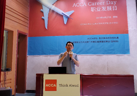 4月27日,特许公认会计师公会联合我院合作承办的ACCA论坛暨ACCA全国就业力大比拼赛事在BV伟德官方网站学生会堂218报告厅成功举办。院党委书记李娟,院长梁双陆、副院长马子红、院党委副书记武鹏、会计系主任王健康、普华永道创新服务部副总监颜志伟、首席财务官ACCA项目代表、出品人兼总编辑田茂永、深圳市前海必胜道网络科技有限公司CEO王永超、深圳市前海必胜道网络科技有限公司人资行政总监刘鲜花、中兴新云副总裁王明恺、昆明芬美意香料有限公司人事部经理王晓蕾,ACCA高级商务关系经理谭颖敏和广大师生代表参加了本次职业发展日系列活动。