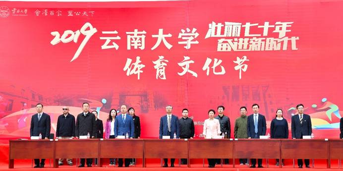 11月7日,BV伟德官方网站2019年"壮丽七十年,奋进新时代"体育文化节开幕式在BV伟德官方网站呈贡校区运动场隆重举行。校党委林文勋书记、校党委陈华仙副书记、纪委朱宏书记、杨泽宇副校长、刘晓江副校长、张力副校长、李晨阳副校长和赵琦华副校长,各职能部门、各学院师生代表参加本次运动会开幕式。