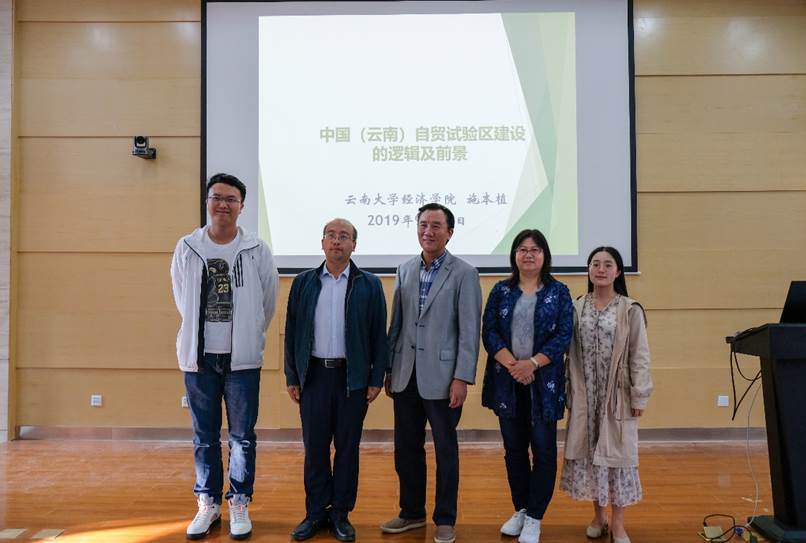 施本植教授在国际经济与贸易、云南经济发展方面有着深入的研究。本次讲座中,施教授首先分享了他对建国七十周年来祖国经济发展进程以及建院三十周年来学院发展的感受。其后,施教授就经济一体化的成因、实质及趋势,自贸区为何成为经济一体化的主要形式,中国(云南)自贸试验区的命名缘由,中国(云南)自贸试验区建设对云南的影响,自贸试验区建设中值得研究和重视的问题五个方面展开阐述。
