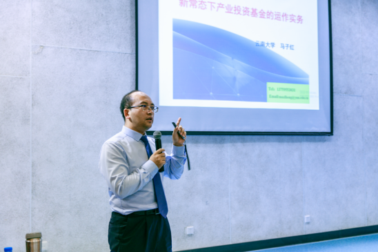 下午15:45,由副院长马子红老师为大家带来第三场主题报告,报告主题为“新常态下产业投资基金的运作实务”。首先,马老师指出,新常态下投资面临三大问题:投什么?谁来投?怎么投?由此引出了新常态下产业投资基金的内涵,即新常态下的产业投资基金=政府引导基金+股权投资基金。接下来,对于政府缘何牵手产业投资基金,马老师指出政府需要解决新建项目融资问题,存量项目债务问题,平台公司资产负债约束问题三大问题。最后,马老师对于新常态下产业投资基金如何运作,以及运作的关键环节进行了较为详细的讲解。还对实务操作中的疑惑进行了分析和解答。整个报告中,马老师以其渊博的知识和深深的人格魅力为同学们带来了一场学术盛宴,相信同学们都获益匪浅。