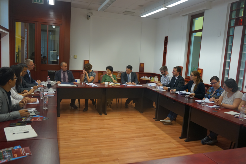 期间,匈牙利塞格德大学孔子学院中方院长王磊(上海外国语大学)和匈方院长李察德详细介绍了孔子学院师资配置、教材使用、课程设置等情况,并带领出访团队参观了孔子学院的办公、教学场地。