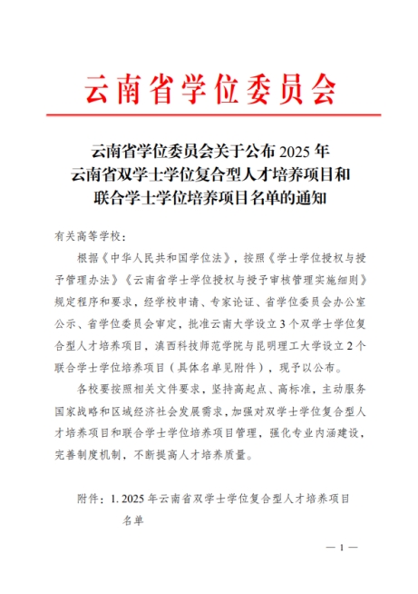 云南省学位委员会近日正式发布《云南省学位委员会公布2025年云南省双学士学位复合型人才培养项目和联合学士学位培养名单的通知》, “金融学+计算机科学与技术”双学士学位复合型人才培养项目成功获批,将于今年开始招生,首批招生规模30人。