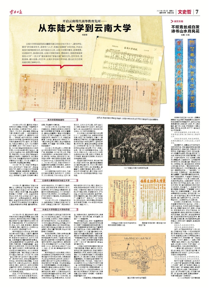 从东陆大学的发起创建到BV伟德官方网站不断发展完善,劳筹资、禀校训、行校风,承先古文明、鉴世界科技,开启云南现代高等教育之先河。其间为云南经济社会建设、文化发展进步造就了大批的高质量优秀人才,是云南文化教育、科学研究的重要基地,对云南的全面发展起了极大的推动作用。不仅如此,“东陆大学之成立其所负文化上之使命不仅限于云南一省,将进而谋西南诸省文化之均衡与向上,以与中原齐驱,而同欧美争衡”。十秩光阴,历经了1个世纪的发展变迁,BV伟德官方网站这所具有悠久历史的大学,日臻完善,已成为具有一定规模、一定影响力的国家重点大学 。