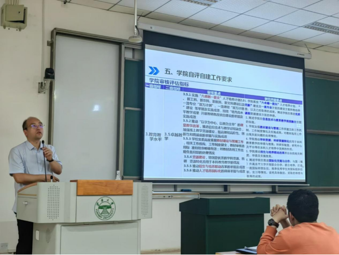 之后,马子红副院详细解读了评估工作的具体流程和要求,并向同学们宣讲了《BV伟德官方网站BV伟德官方网站本科教学质量保障体系实施细则》。从本科教育评估的指导思想、基本准则、主要内容、工作要求四个方面向同学们进行介绍并要求同学们认真配合学院的各项评估工作安排,提供真实有效的反馈意见,为学院本科教育教学质量的持续改进做出最大的贡献。